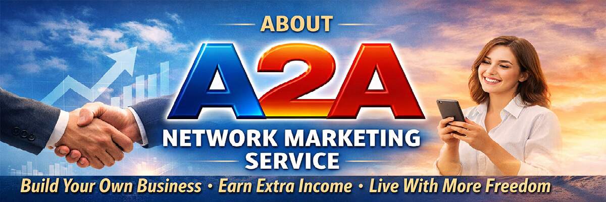Step into a smarter, more structured way of building success with A2A Network Marketing Service—a complete growth system designed to help you achieve results through training, mentorship, and step-by-step guidance. Whether you’re a beginner or already experienced, A2A gives you the support and direction needed to build income, develop leadership, and grow with confidence.