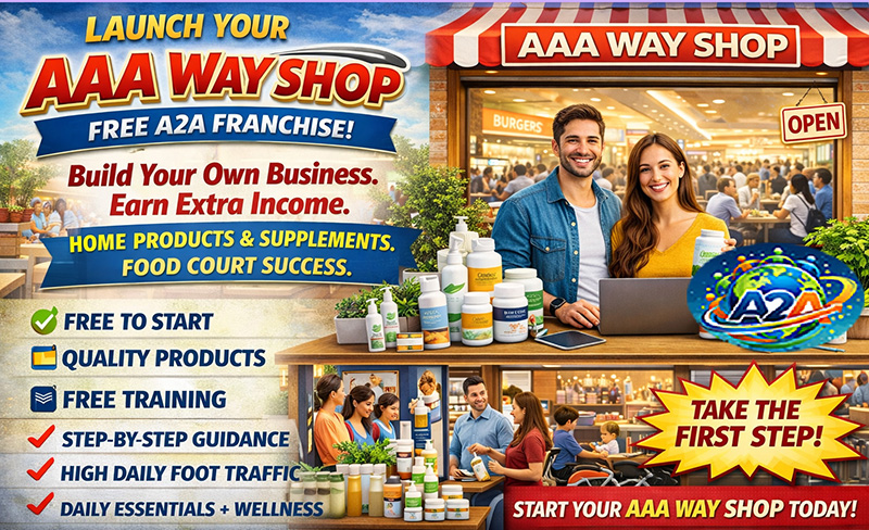 Welcome to the AAA Way Shop by A2A, a Free Franchise Opportunity created for everyday people who want to become business owners in a simple, ethical, and supportive way. Whether your goal is to earn a side income, create a stable second stream of earnings, or grow into full-time entrepreneurship, A2A provides a structured path so you can build step by step with guidance and community support.